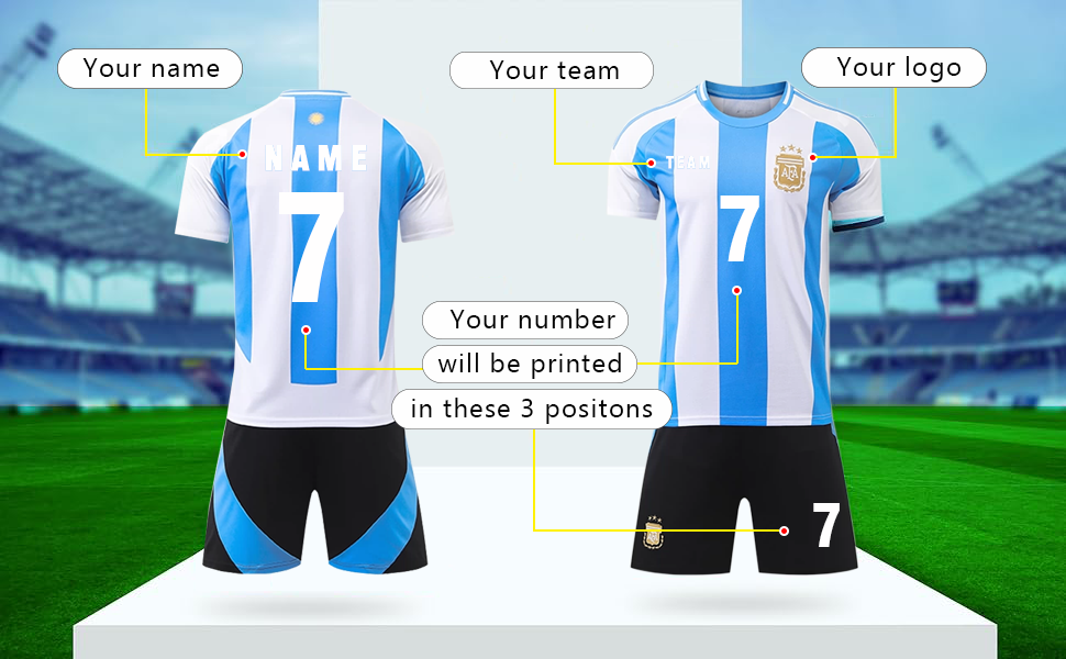 Custom Soccer Jersey Football Sports Team Training Soccer Uniforms Personalized Name Number Argentina Logo