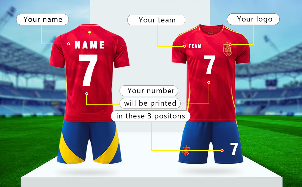 Custom Soccer Jersey Football Sports Team Training Soccer Uniforms Personalized Name Number Spain Logo